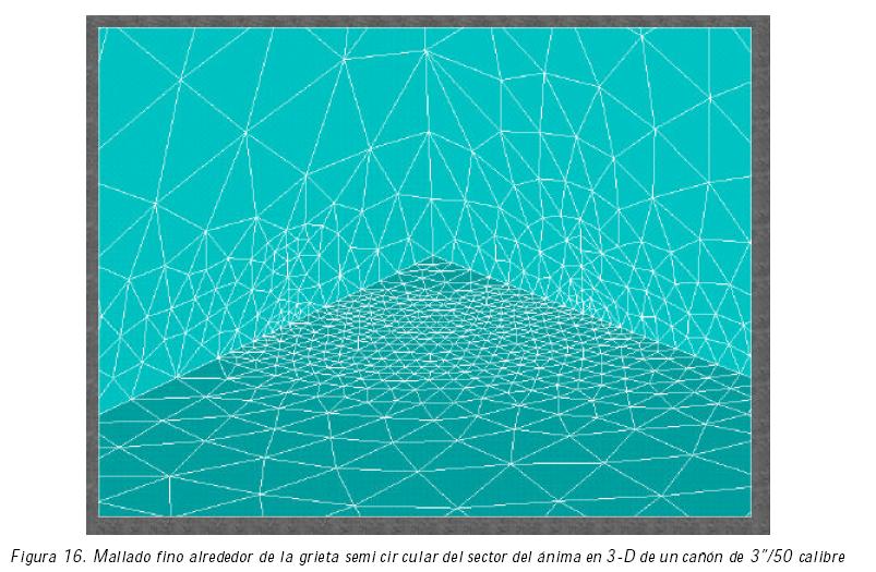 Los modelos geométricos anteriores en 2D son muy útiles para conocer la distribución de los esfuerzos y el FIE en la sección más crítica del ánima de un cañón (inicio del rayado). Además, tienen la ventaja que no se necesita un mallado demasiado grande para sus análisis, pero está limitado a grietas simétricas y longitudinales. Para el caso de grietas que no cumplan con este requisito, se necesita un análisis en un modelo geométrico en 3D.