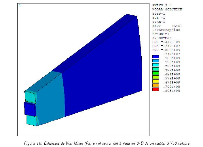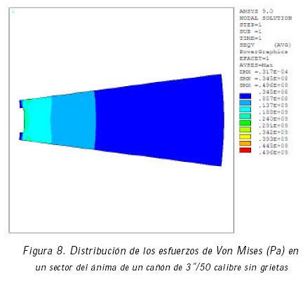 Posteriormente, se realizó un análisis de la distribución de los esfuerzos en el ánima de un cañón de 3''/50 calibre, con un acero ASTM A723 (Koh, 1996), cuyas propiedades se indican en la tabla 3.