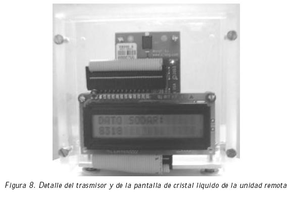 La unidad remota también cuenta con una pantalla de cristal liquido HD44780 de 2 x 16 caracteres para la supervisión del correcto funcionamiento del medidor de nivel, ya que muestra la información en tiempo real. La operación de esta pantalla se efectúa mediante tres comandos implementados en el microcontrolador BS2p, que permiten la comunicación directa a través de tres líneas de control y cuatro de datos.