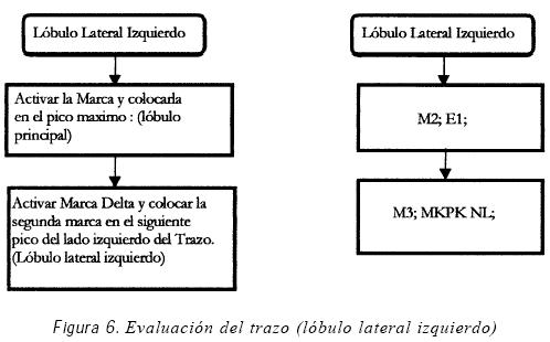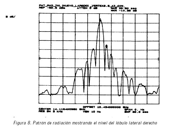 Con la ayuda de la marca del analizador se pueden visualizar en forma directa los niveles de los lóbulos laterales primarios del trazo del patrón de radiación, el primer lóbulo lateral izquierdo y el primer lóbulo lateral derecho (Figura 6 y 7).