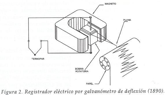 En los sistemas eléctricos el elemento activo fue el galvanómetro de deflexión de alta sensibilidad, el cual respondía a señales eléctricas. Este dispositivo que se muestra en la figura 2 apareció a finales del Siglo XVIII.