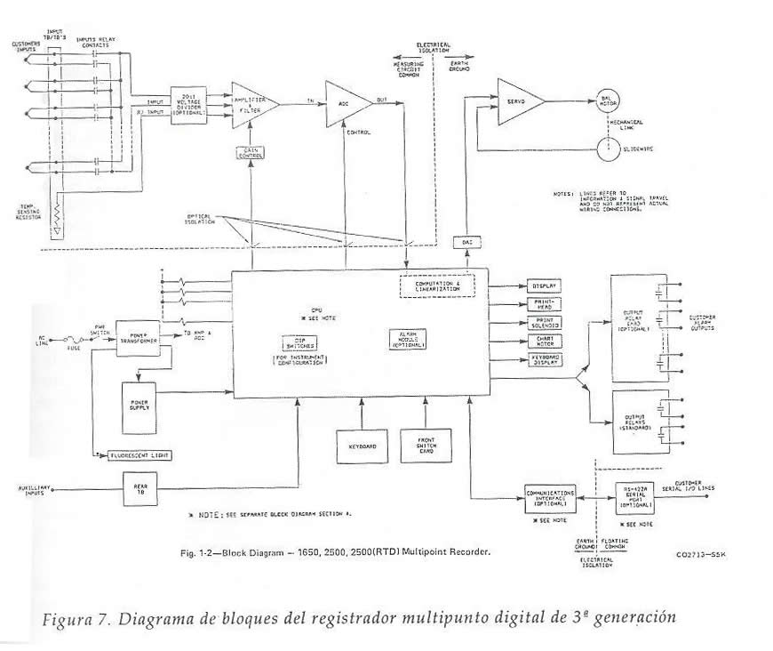 La versión multipunto de los registradores Speedomax 165&250, con hasta 30 puntos de registro, fue muy usada en la práctica. Su diagrama de bloques se muestra en la figura 6.