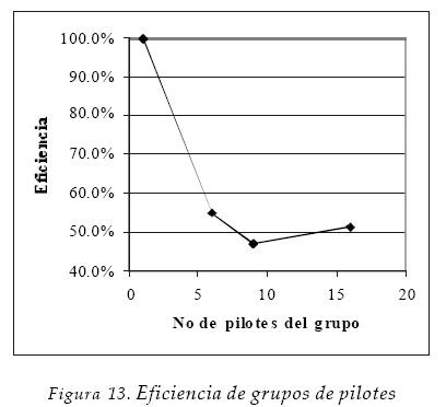 El estudio del comportamiento de pilotes revela que los pilotes aislados son más eficientes ante carga lateral que los pilotes actuando en un grupo. Se llegan a tener eficiencias de hasta 50% en el caso de grupos grandes de pilotes.