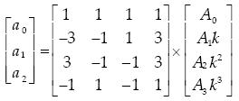 The transfer function coefficients ai ,bi, for i=0,1,2,3 can then be obtained using the equations: