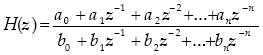 In the discretetime domain the z transforms of the signals are used, and a digital filter is characterized by the transfer function: