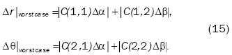 In order to compare the sensitivities of different structures we need a quantitative sensitivity measure. To this end, we use here the upper limit of the variations of Δr and Δθ in the pole radius and angle, respectively, for a given change in the multiplier values, Δα and Aβ. The upper limit of variation of a function ΔF can be estimated by the worstcase method as (Lutovac & Tosic, 2001)