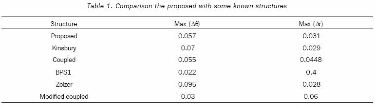 The sensitivity diagrams (25) for the proposed structure are plotted in figure 3 (a) for values of the pole radius in the range [0.8 0.99], and the phase values in the range [p/4 p/2]. In order to compare the sensitivity of the proposed structure we find the sensitivities diagrams of some well known structures, using the same values of pole radius and the same phase values, and the method described in Jovanovic Dolecek & Mitra (2006). The corresponding sensitivity diagrams are shown in figure 3 (b)(f). The results are summarized in the table 1.