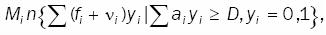 Si se considera ahora el subproblema originado por el conjunto de restricciones (B), y sólo se usa la parte correspondiente a la variable yi, resulta en un problema con el mismo conjunto de restricciones que el mochila anterior, y con valor de