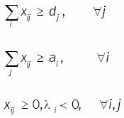 y de esta forma aún se cumple la propiedad de dualidad débil de programación lineal. Por lo que es posible reforzar al problema S con la restricción (4), con lo que se obtiene un problema del tipo transporte. Suceso muy interesante, ya que existen algoritmos de solución muy eficientes.