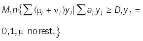Del conjunto de restricciones (A) se obtiene un problema en variables yi que al aplicarle el principio de linearización entera y realizar la separación para cada vehículo i,