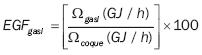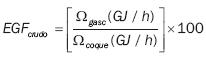 Otro parámetro que comúnmente se usa para definir el desempeño de un proceso de gasificación es la eficiencia de gas frío del gassin crudo (EGFgasc), la cual se define como la relación de la potencia energética del gassin crudo Ωgasc (GJ/h), respecto a la potencia energética del coque alimentado Ωcoque (GJ/h) (Himan et al., 2003):