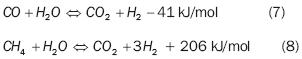 En particular, la reacción de equilibrio del CO con vapor de agua, ecuación 7, es una reacción importante, si se considera que interviene en el control de la composición del gassin limpio (gasl); a temperaturas mayores de 1000 °C su velocidad de reacción es tan rápida que puede considerarse que se encuentra en equilibrio (Hui, 2006), (Nagpal et al., 2004), como es el caso de este trabajo de simulación.