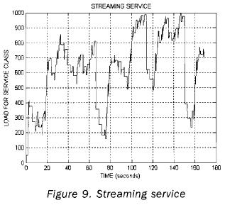 The figure 9 shows the load for the streaming service class and this service class is not so strict in delay; nevertheless, it is necessary that the information is delivered in acceptable values. In this sense, it is possible to observe that the load level does not reach the maximum and that its changes are major.