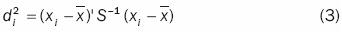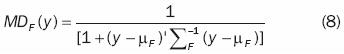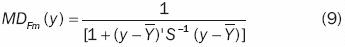 Si los parámetros de la distribución de referencia no son conocidos, la versión muestral de la profundidad de Mahalanobis dada por la ecuación (9 ) es: