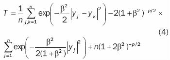 denotan el vector de medias muestrales y la matriz de varianzascovarianzas respectivamente. El parámetro β es un parámetro de suavizamiento, determinado por el tamaño de la muestra y definido de la forma siguiente: