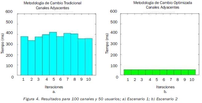 Los resultados se presentan como el promedio de los diez cambios de canal para diez iteraciones del programa.
