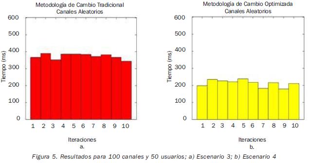 Sobre cada escenario se hicieron variar tanto el número de usuarios como el de canales para analizar la influencia de estos en el tiempo de cambio de canal.