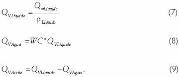 Donde: WC es el corte de agua de la fase líquida, Qv es el flujo volumétrico, Qm es el flujo másico y p la densidad.