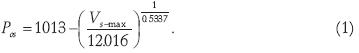 En esta ecuación la velocidad superficial máxima está en nudos. La ecuación (1) fue propuesta por Landsea et al. (2003) y está basada en la regresión de datos medidos de 1970 a 1997, en distintas latitudes de la cuenca del Atlántico.