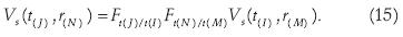 Calcular la velocidad superficial modificada por los factores de ráfaga y rugosidad Vs(t(J) , r(N)) para el sitio de interés, de acuerdo con la ecuación: