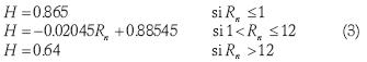 Calcular el parámetro H para los diferentes sitios de interés empleando la ecuación (3).