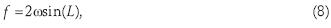 donde f es el parámetro de Coriolis (s 1); β es el ángulo (grados) medido de la trayectoria del huracán hacia el sitio de interés, el cual toma el valor de 90° en este paso; ω es la velocidad angular de rotación de la tierra (rad/s). Se introduce la constante 10.197 en las ecuaciones (6) y (9), debido a las unidades empleadas, ya que 1mb equivale a 10.197kg/m2.