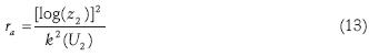 De manera alternativa, si las rugosidades pare el momento de transferencia (zom y zov) son conocidos, entonces z1=zo, es decir, la velocidad del viento en zo es cero, por lo que sólo se requiere una medición de velocidad de viento a la altura z2; así, la ecuación anterior se puede escribir como: