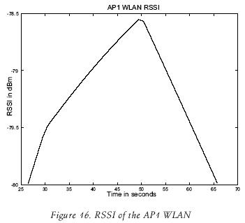 Figure 16 shows the graph of the RSSI measured by the MN from the WLAN AP1, during simulation.