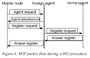 The sequence of messages interchanged between the MN and the HA (via the Foreign Agent) are shown in figure 6.