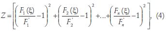 donde F'1 F'2... F'n, son los valores de los momentos observados, es decir, la media, varianza y correlación lag1, entre otros. Por su parte, F1, F2, F3... Fn, son los momentos teóricos, funciones del vector de parámetros, ξ(λ,µx ,µc η, β). Para este caso de aplicación en consumos domésticos, se consideró n =3, que representa la media, varianza y covarianza en la ecuación (4).