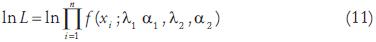 The parameters of the TCEVMIN distribution can be es ti ma ted from sitespecific data set by the direct maximization of equation (11) by using the Rosenbrock method.