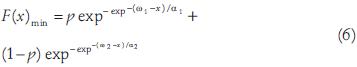 If the EV1 distribution is used in equation 5, the mixed Gumbel distribution (EV1MIX) for the minima is