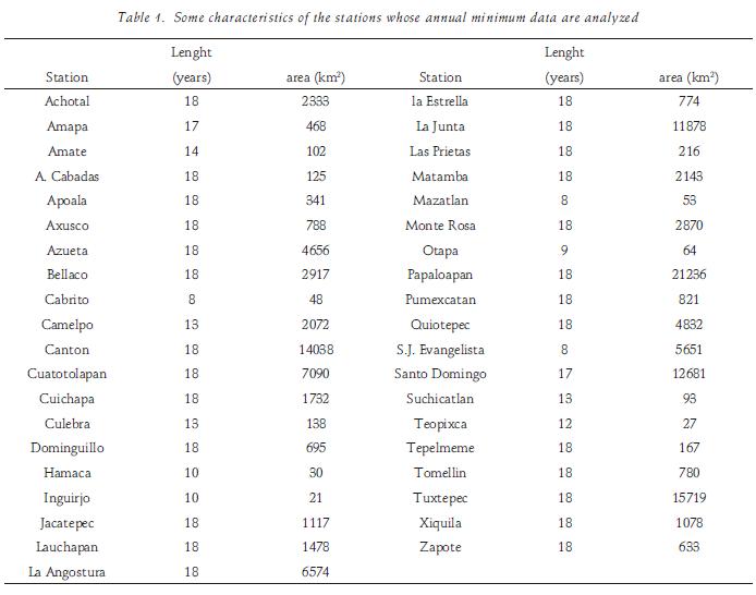 A region located in southern Mexico with 39 gauging stations was selected to apply the mixed distributions to lo west 1 day flows. For each station, mixed and standard distributions were fitted and the best one was chosen according to the criterion of minimum standard error of fit (SEF), as defined by Kite (1988):