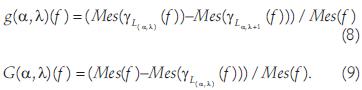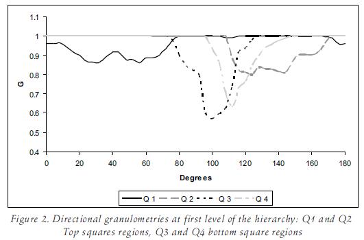 The importance of this function is that it permits the detection of the main structures in a given direction. Thus, instead of fixing the parameter α, the para meter λ was fixed (directional granulometry).