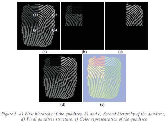 In this section, the application of quad tree structure is presented for left loop, right loop, worth loop and arch loop classes of fingerprints (Henry, 1900). The left loop fingerprint class is presented in detailed way and for the ot her cases it is presented only the final results.