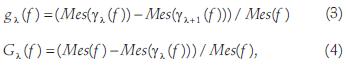 where Mes represents the volume for graylevel images and the area for binary images.