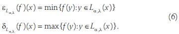 Since the interest in this paper is to introduce of directional granulometry and a function computed by the supremum of directional erosions in order to characterize the fingerprints, the size of the structural element λ and the angle α (direction) parameters are required to characterize them. Thus, the set of points of a line segment is computed by: