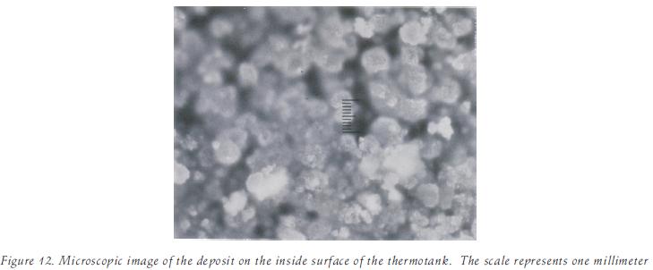 These are clearly visible in the microscope image shown in figure 12. This result indicates that formation of deposits in the thermotank proceeds at a very slow rate.