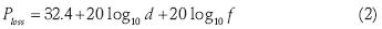 where 32.4 is the reference loss constant, d is the distance in kilometers (km) and f is the frequency in Megahertz (MHz). Equation (2) can be simplified if we exclusively utilize the 2400 MHz frequency band.