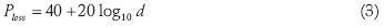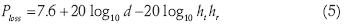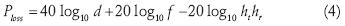 where f is the frequency in gigahertz (GHz), ht and hr are the antenna heights forTx and Rx respectively, and d is the overall distance. Equation (4) can be also simplified and applied in the 2.4 GHz frequency band.