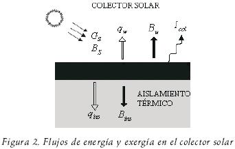 Considere el colector solar en estado estacionario sujeto a flujos de energía y exergía (figura 2).