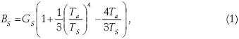 La exergía Bs contenida en la radiación isotrópica del Sol, considerado como cuerpo negro, a la temperatura de su superficie Ts, referida a la temperatura ambiente Ta (Petela, 1964) es: