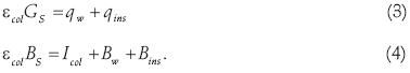 En la ecuación 3, el primer término del lado derecho εcolGs, es la energía absorbida en el colector que llega del sol, qw es el calor que cede el colector al agua salada, y qins, las pérdidas de calor hacia el medio ambiente, a través del aislamiento térmico.