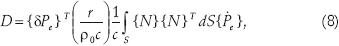 La ecuación matricial (7) no considera la disipación de energía, debida a la absorción de ésta en las fronteras. La energía disipada se obtiene al utilizar el término de disipación integrado sobre la superficie (S) y utilizando la funciones de forma para la presión (ANSYS, 2002)