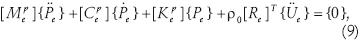 donde es la matriz de masa del fluido, es la matriz de rigidez de la estructura y ρ0[Re]T es la matriz de masa acoplada (interfase estructura–fluido).