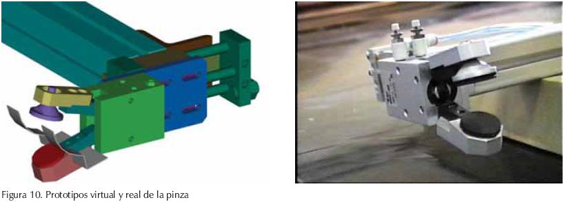 Como paso siguiente, una vez definidas todas las partes a detalle, el prototipo virtual queda establecido y a través de éste se comprueba que no haya interferencia ni colisiones inesperadas en las partes móviles. Finalmente, se envían los dibujos de producción a los talleres de maquinado para la manufactura y así culminar con el ensamble de las partes correspondientes. La figura 10 muestra ambos el prototipo virtual y el real.