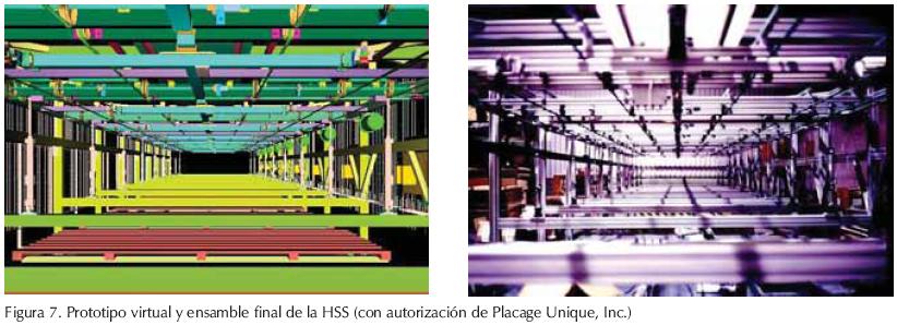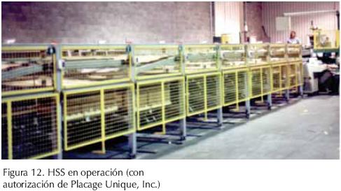 Actualmente se encuentran en operación dos líneas de diez estaciones y una de doce estaciones en la Empresa Placage Unique, Inc., Canadá, (www.placage.com). En la figura 7 se presentan vistas similares, tanto del diseño virtual como del ensamble real de una versión de diez estaciones, mientras que en la figura 8 se ilustran dos HSS en operación.