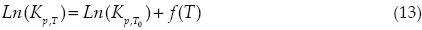 Las constantes de equilibrio (K) de las reacciones involucradas en la gasificación se obtuvieron usando la correlación