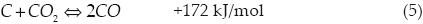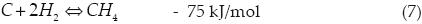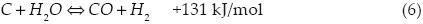 Esencialmente las ecuaciones 2, 5, 6 y 7 representan reacciones heterogéneas que determinan la composición del gassin en el estado de equilibrio. Estas cuatro reacciones describen la manera en que el coque de petróleo puede ser gasificado. La reacción 5 produce el CO al gasificar el carbono en una atmósfera de CO2, la reacción 6 es predominante sobre el proceso gasagua y la reacción 7 es la base de hidrogenación en el proceso de gasificación. Obsérvese que en las ecuaciones 57 se encuentran involucradas las reacciones homogéneas del CO y la reacción de metanación con vapor de agua, ecuaciones 8 y 9.