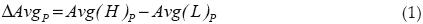 y a su vez, xj | P=M y xj | P=L son los valores de la variable de salida cuando P toma los valores máximo y mínimo, respectivamente. Además, si AAvgP es positivo, el incrementar el parámetro P ocasionará un incremento en la variable de salida. Con ΔAvgP negativo, el efecto es el opuesto.
